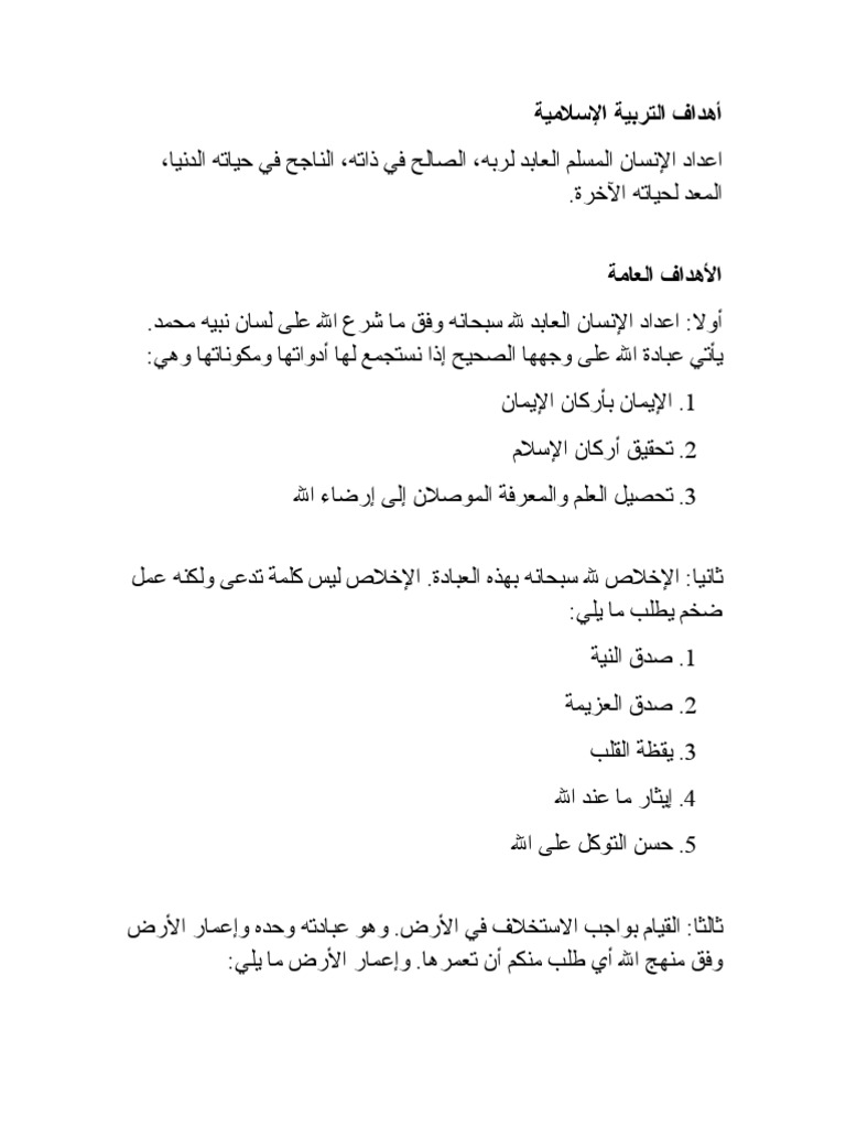 أهداف التربية الإسلامية Pdf