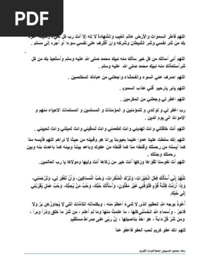اللهم فاطر السموات واﻷرض عالم الغيب والشهادة لا إله إلا أنت رب كل شيء ومليكه أعوذ بك من شر نفسي وشر الشيطان وشركه وان أقترف على نفسي سوءا أو أجره إلى مسلم Docx