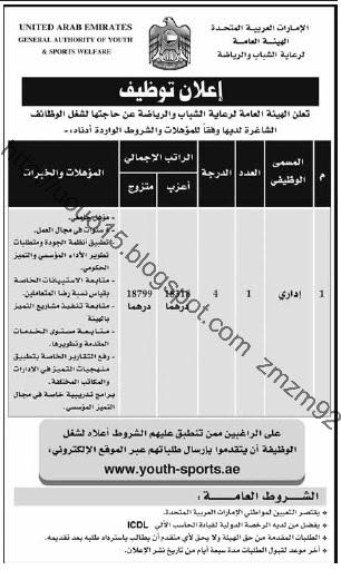 وظائف الهيئه العامه لرعايه الشباب والرياضه وظائف شاغرة فى الامارات
