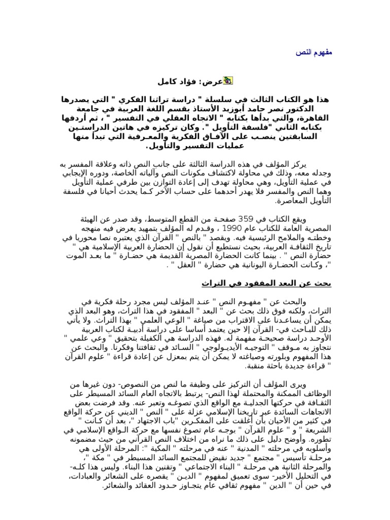 عرض كتاب مفهوم النص لنصر حامد أبو زيد