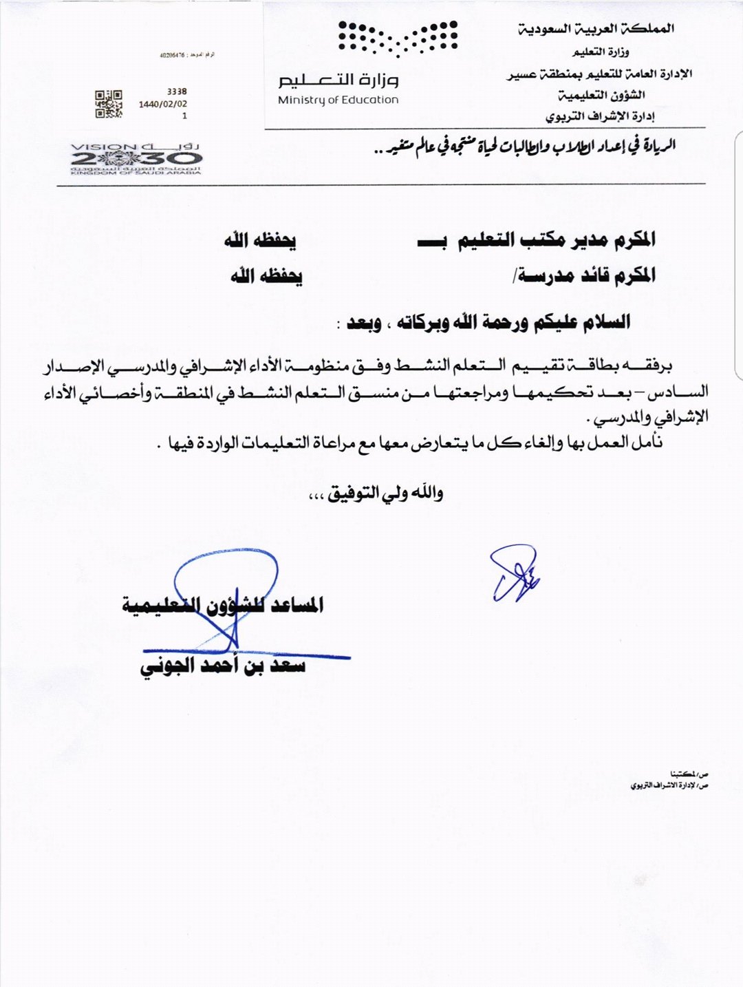 بطاقة التعلم النشط في الاصدارالسادس لمنظومة الإداء الاشرافي والمدرسي بتعليم الدواسر غرب الإخبــارية
