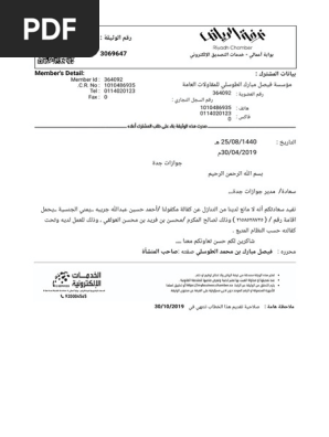 بوابة أعمالي خدمات التصديق الإلكتروني رقم الوثيقة ملاحظة هامة صلاحية تقديم هذا الخطاب تنتهي في بيانات المشترك رقم العضوية رقم السجل التجاري هاتف فاكس Member S Detail Member Id C R No Tel Fax التاريخ محرره صفته
