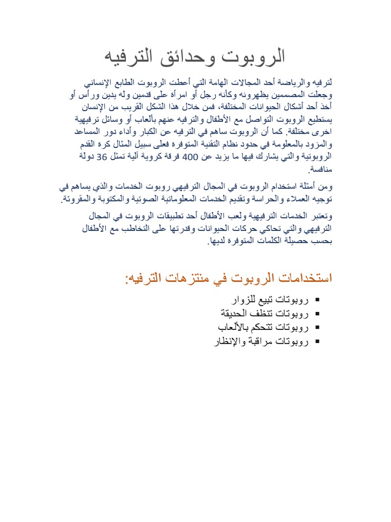 دراسة تطبيقات الروبوتات في منتزهات وحدائق الترفيه المكتبة التعليمية