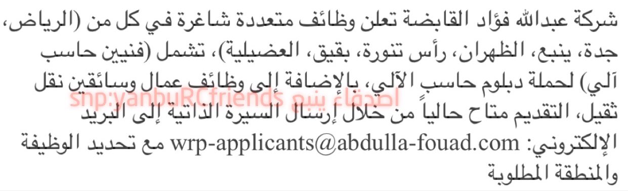 أصدقاء ينبع الصناعية On Twitter شركة عبدالله فؤاد القابضة تعلن توفر وظائف بالشرقية و الرياض و جدة و ينبع