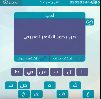 حل سؤال من بحور الشعر العربى لغز رقم 17 من لعبة وصلة للمجموعة الثانية صقور الإبدآع