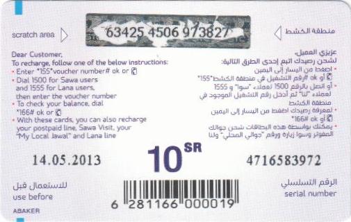Phonecard Sawa 10 Mobile Saudi Arabia Saudi Arabia Stc Sawa Mobile Refill Col Sa P Aj 106