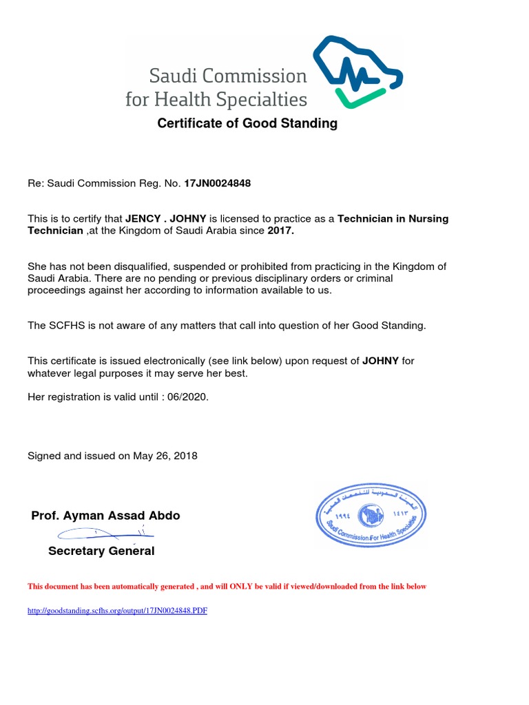 How To Secure An Electronic Copy Of A Certificate Of Good Standing From The Saudi Commission For Health Specialties Ofwordsandphotographs